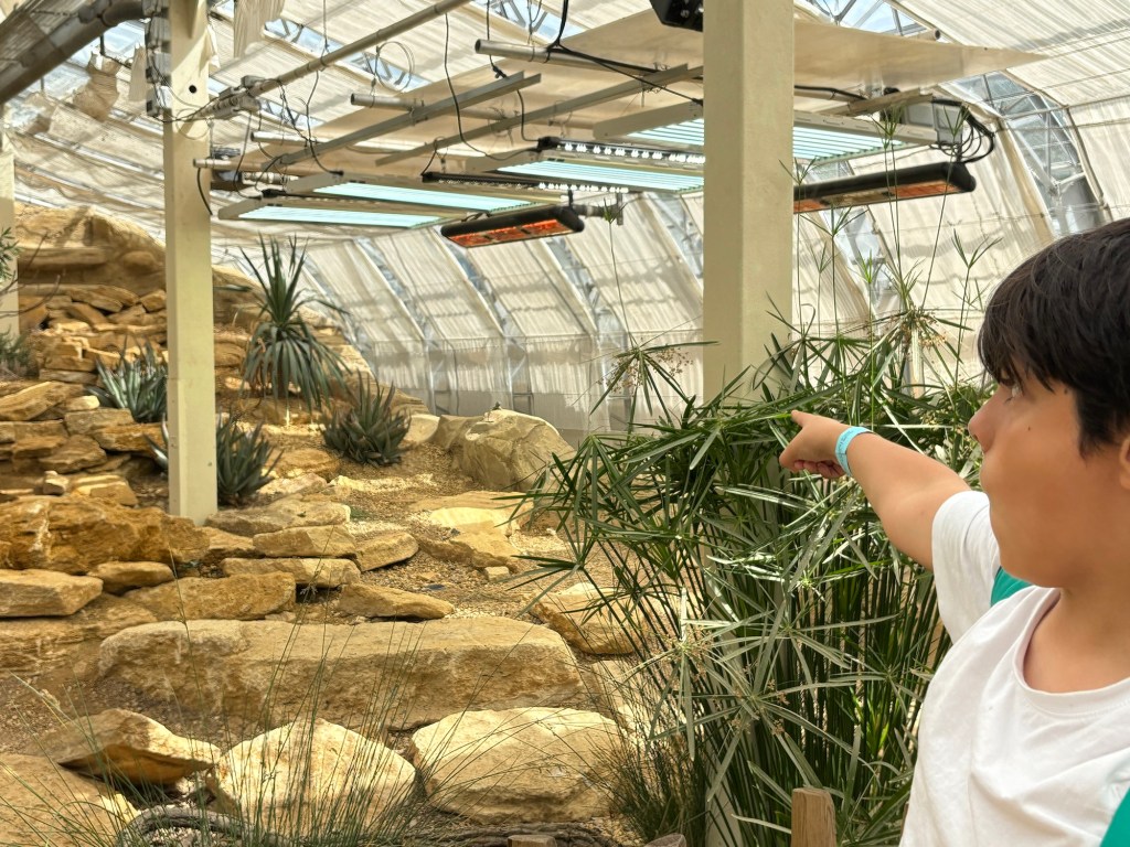 By this point we were feeling a bit chilly so decided to make our way to the Tropical House. Oh my!!!! How I loved the Tropical House. It felt like being back in my motherland. The heat, the humidity, the sounds, the colours of the birds…..this was my happy place (as you can probably guess I’m not a fan of the cold). Not only did we see some stunningly colourful and beautiful birds, we saw tiny frogs who made an incredibly loud noise for being so small, some lizards, fish attacking a lettuce head for breakfast, vegetation and more. There was a gentleman who talked us through lots of the different species and why they were there. He was amazing with the kids and their questions. We didn’t want to leave this warm space but Child 1 was feeling decidedly at melting point from the heat, so off we went for our next discovery.