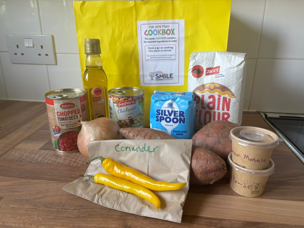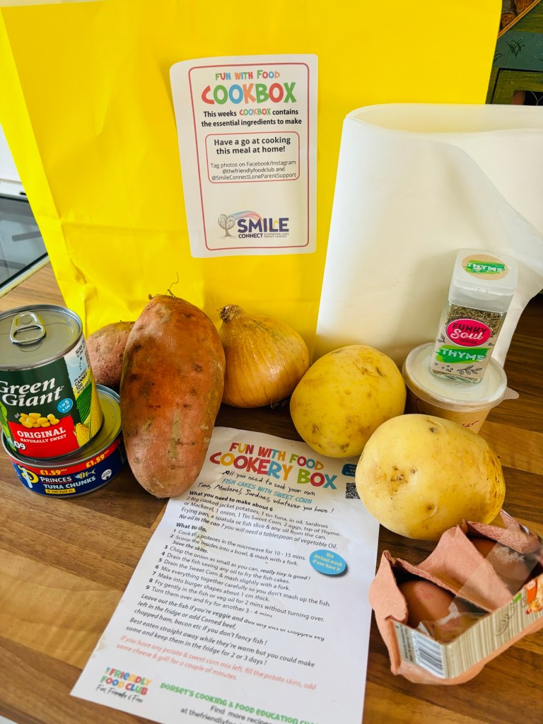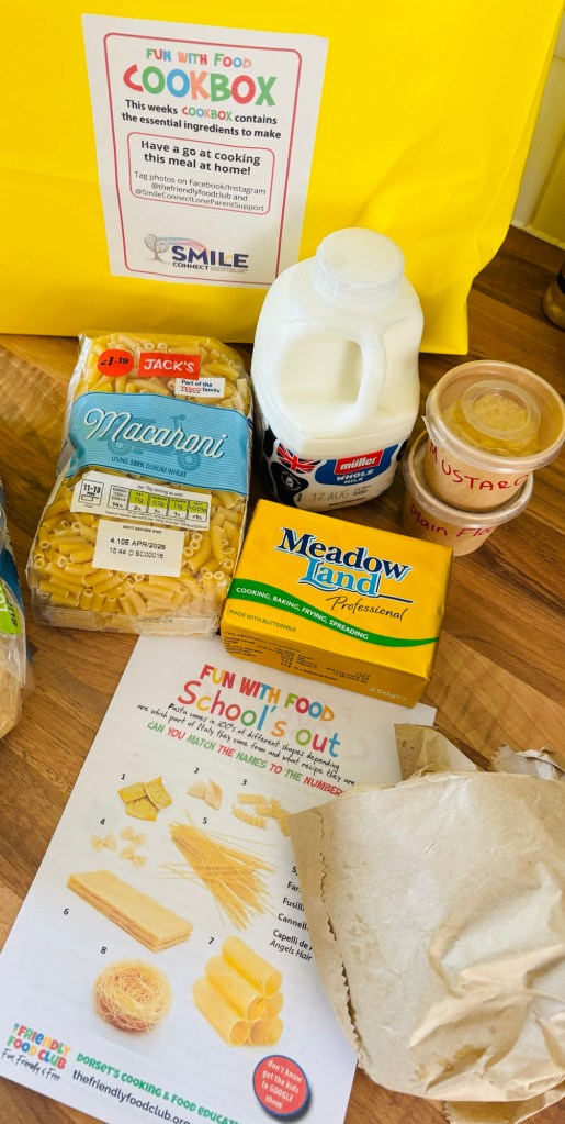 Over the summer holidays, Smile collaborated with Dorset’s Cooking and Food Education Charity, The Friendly Food Club and put together the Yellow bag Initiative. This comprised of 4 yellow recipe bags that were delivered on a weekly basis by volunteers, to our doorstep. Each bag contained a recipe and all the ingredients needed to cook that meal, from scratch. I was one of the lucky lone parents to be able to take part and what fun it was!!!!