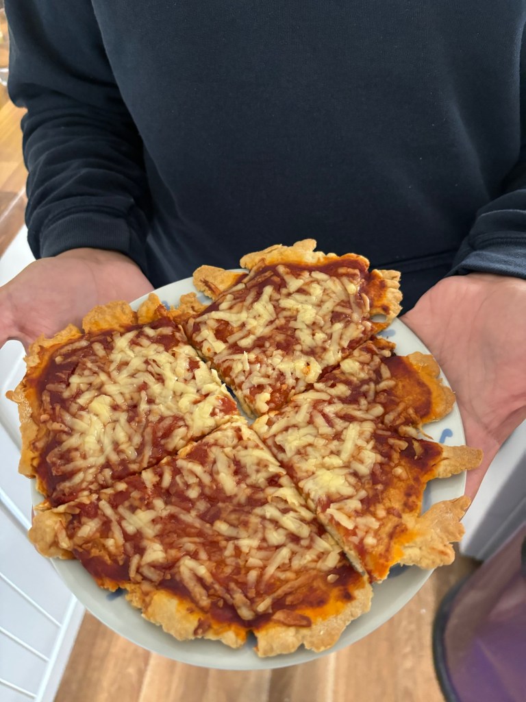 First things first…. the base needed making. I’ve got teenagers now and didn’t expect them to be quite as happy as they were, making, squeezing, squishing, rolling and slamming the dough mix 🤣 . They are at that age where pretty much any ‘chore’ is met with moans and groans. But not this time, they couldn’t wait to get stuck in. They took turns making the dough and once done they ‘dressed’ their own pizza. It was amusing hearing them checking out each others toppings alongside the odd complaint that one had taken more cheese than the other.