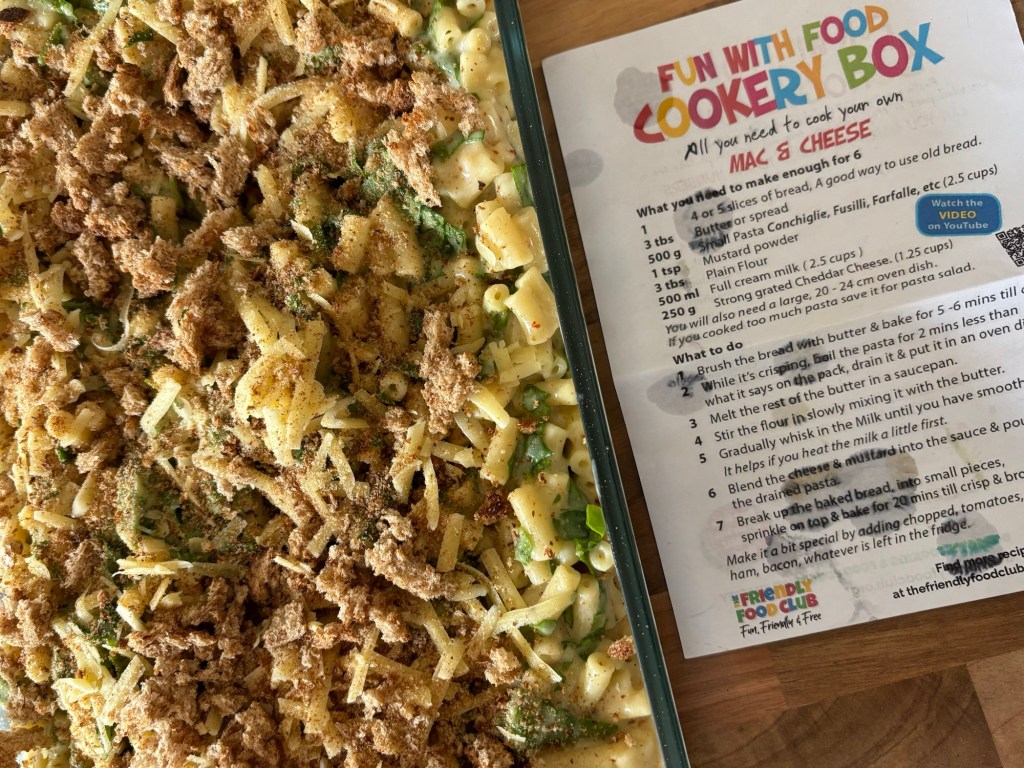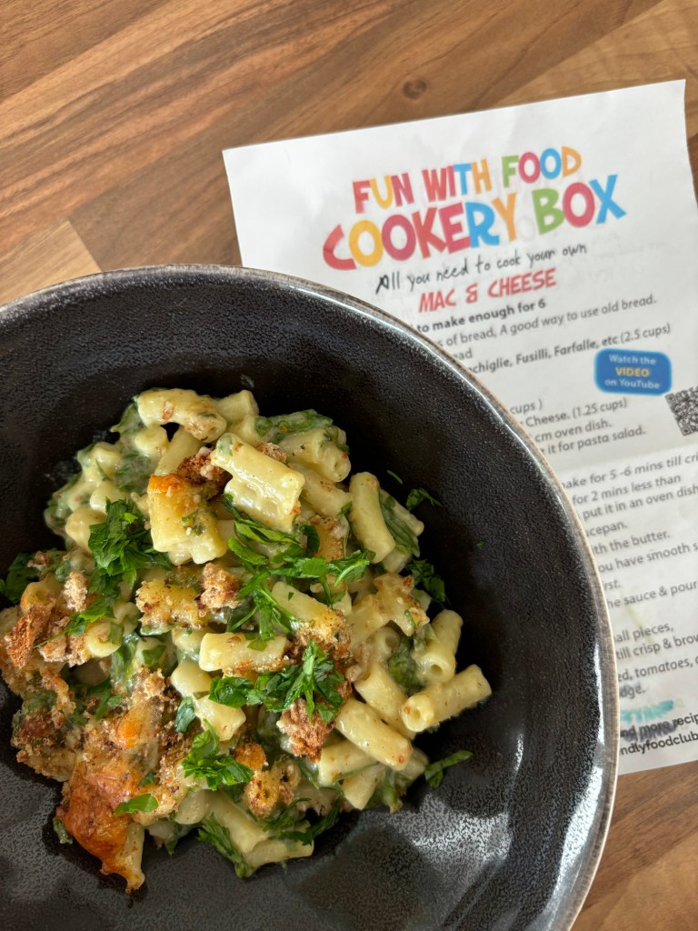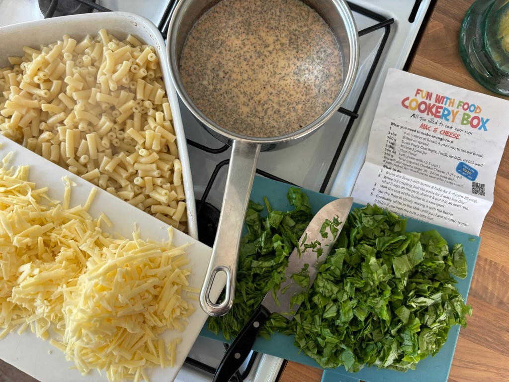 When putting the assembled dish in the oven, I have to admit, it smelled amazing. We had a bag of spinach in the fridge so chopped that up and added it to the mix. Nothing wrong with getting the token ‘green item’ into them while we were at it. I am happy to report that everyone enjoyed their home made Mac & Cheese. The kids were even more pleased at how easy they found it – to follow the recipe and make a wholesome hearty meal at home! Result!